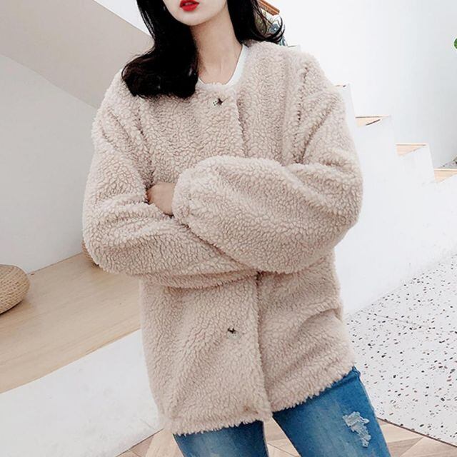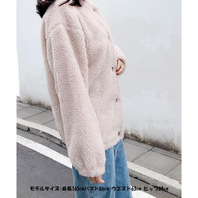 商品名:レディース ジャケット リバーシブル ボア ブルゾン ノーカラー アウター ショート コート 軽い こもこ 防寒 ボリューム(宅急便のみ対応)