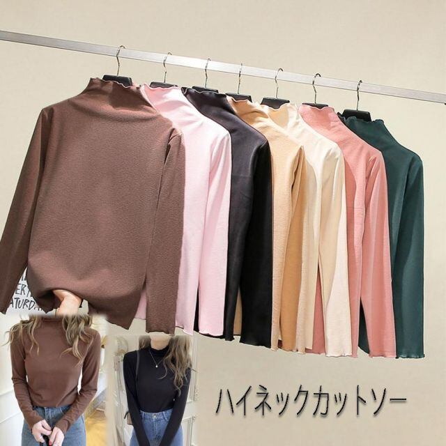 商品名:Tシャツ レディース 長袖 ハイネック tシャツ トップス 無地 カットソー 長袖tシャツ インナー 暖かい 黒 カジュアル(メール便送料無料)