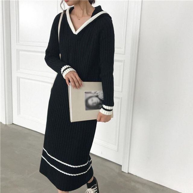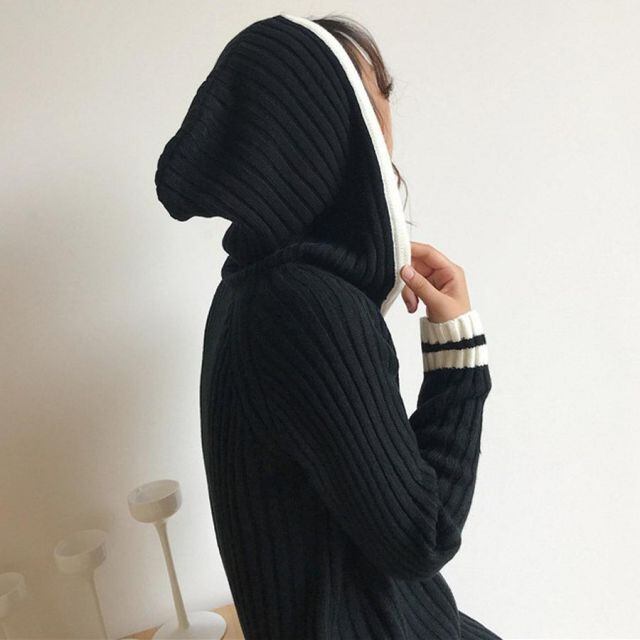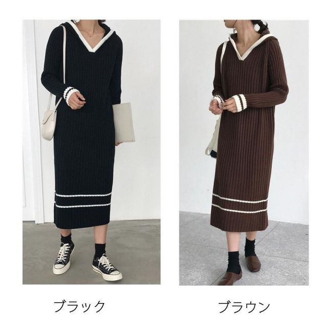 商品名:ワンピース レディース ニットワンピ ロング丈 リブニット マキシ丈ワンピース ニットセーター ニットパーカー ロングセーター(宅急便のみ対応)