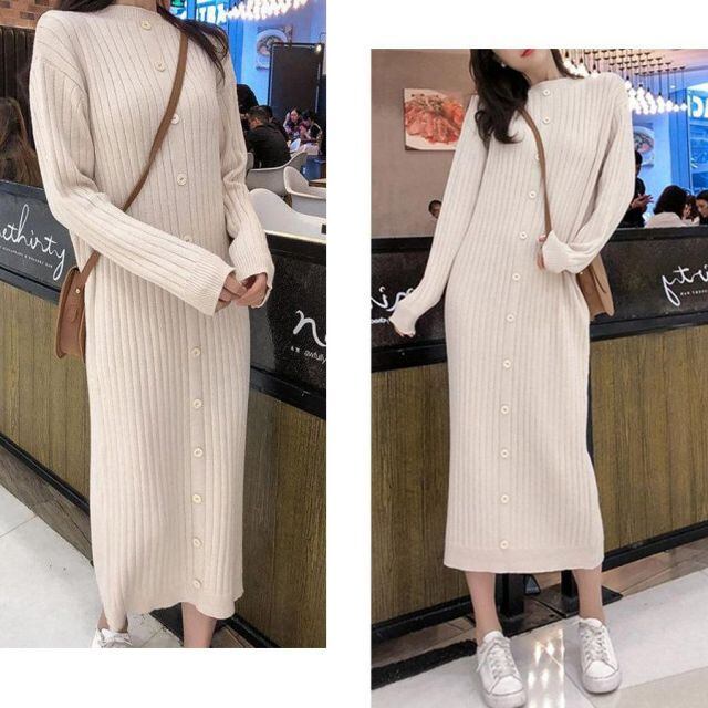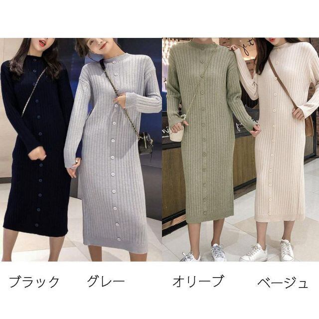 商品名:ワンピース レディース ニットワンピ ハイネック ロング丈 リブニット マキシ丈ワンピース ニットセーター ロングセーター 無地 リブ編み(宅急便のみ対応)