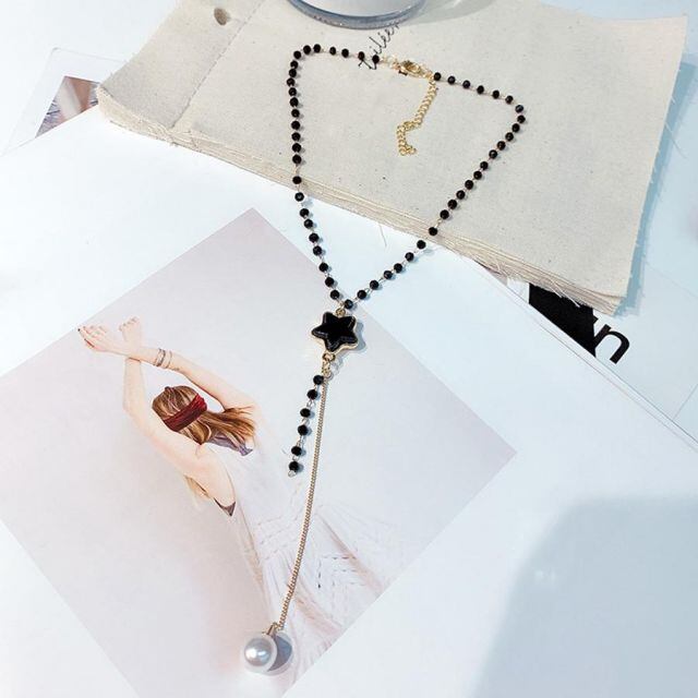 胸元でぱっと目を惹くY字デザイン星とパールネックレスです。
