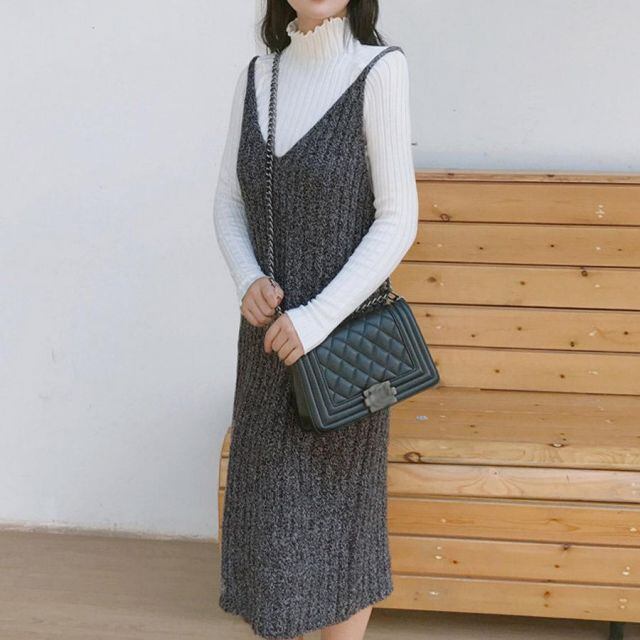 レイヤードコーデとして大人気のワイドリブニット キャミワンピース