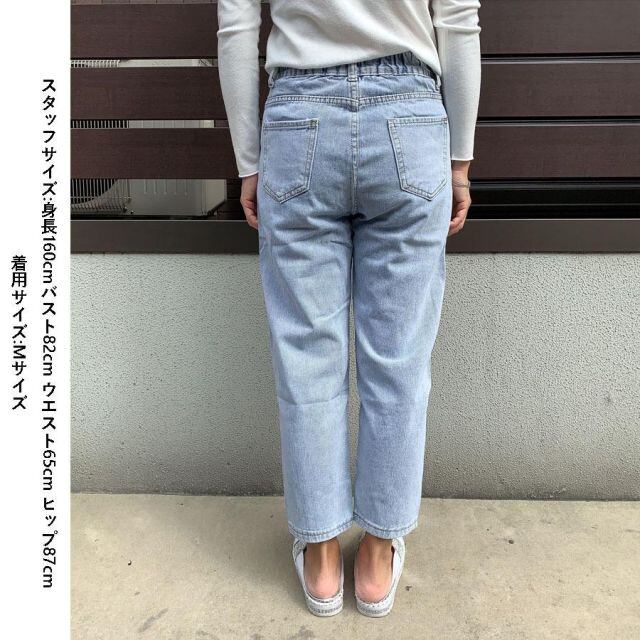 商品名:デニムパンツ レディース ハイウエスト 9分丈パンツ バックゴム仕様 ジーンズ(メール便送料無料)