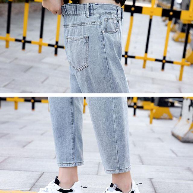 デニムパンツ レディース ハイウエスト 9分丈パンツ バックゴム仕様 ジーンズ(メール便送料無料)