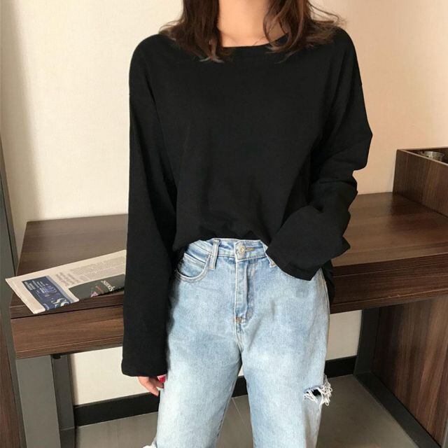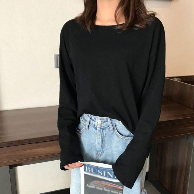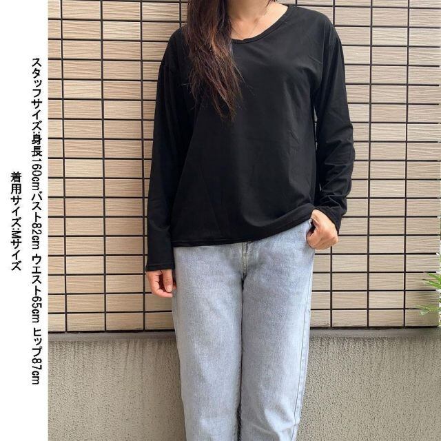 商品名:長袖Tシャツ VネックUネックTシャツ レディース 無地 ロングTシャツ 黒 白 ペア カップル ペアルック お揃い(メール便送料無料)