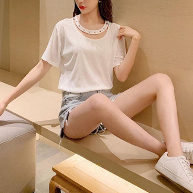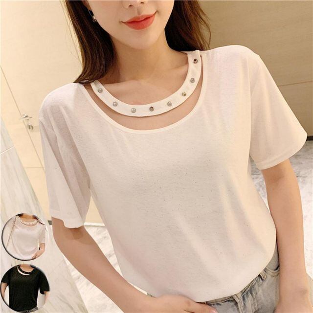 Tシャツレディース カットソー 大きいサイズ 伸縮性 丸首 体型カバー(メール便送料無料)