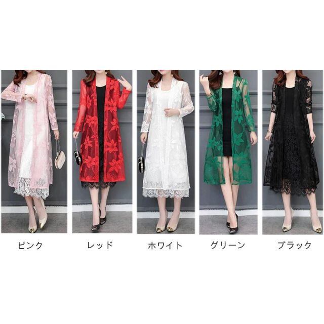 ロング長袖カーディガン レース花柄 着痩せ 羽織物 UVカット 薄手 大きいサイズ シンプル(メール便送料無料)