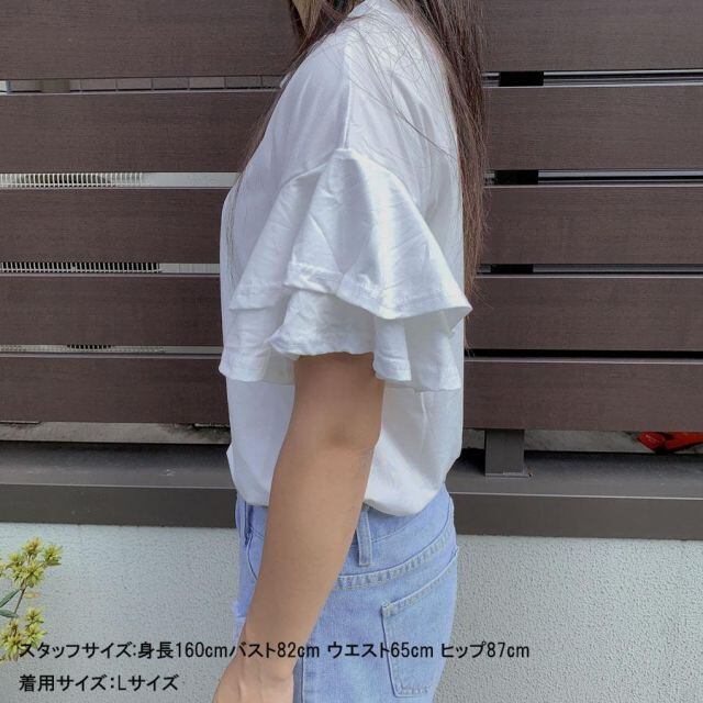 商品名:Tシャツレディース カットソー 大きいサイズ フレア袖? フリル 無地 ナチュラル 盛り袖(メール便送料無料)
