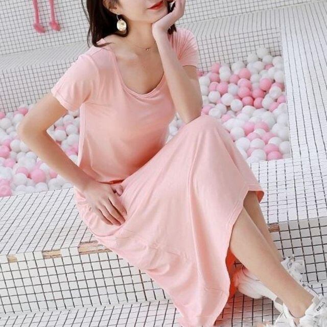 商品名:カップ付きルームウェア ワンピース パジャマ レディース 大きいサイズ 寝巻き ナイトウエア(メール便送料無料)