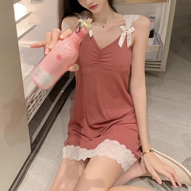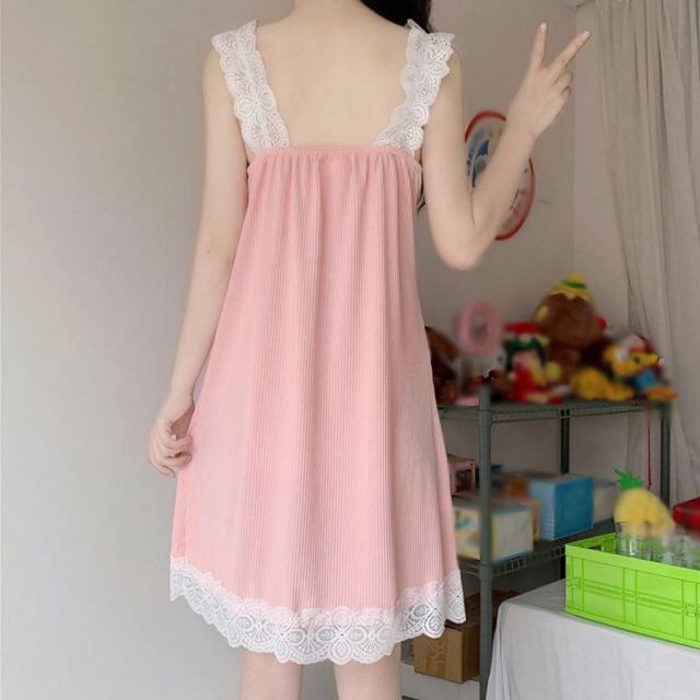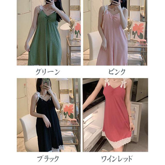 商品名:パジャマ キャミワンピース ルームウェア レディース 部屋着 寝巻き パッド付 レース切替 セクシー おしゃれ(メール便送料無料)