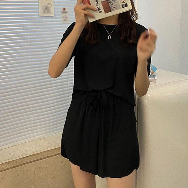 商品名:ルームウェア 上下セット 薄手 セットアップ パジャマ 接触冷感 レディース Tシャツ 半袖 ワイドパンツ ロングパンツ(メール便送料無料)