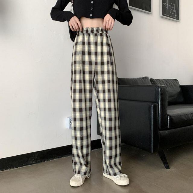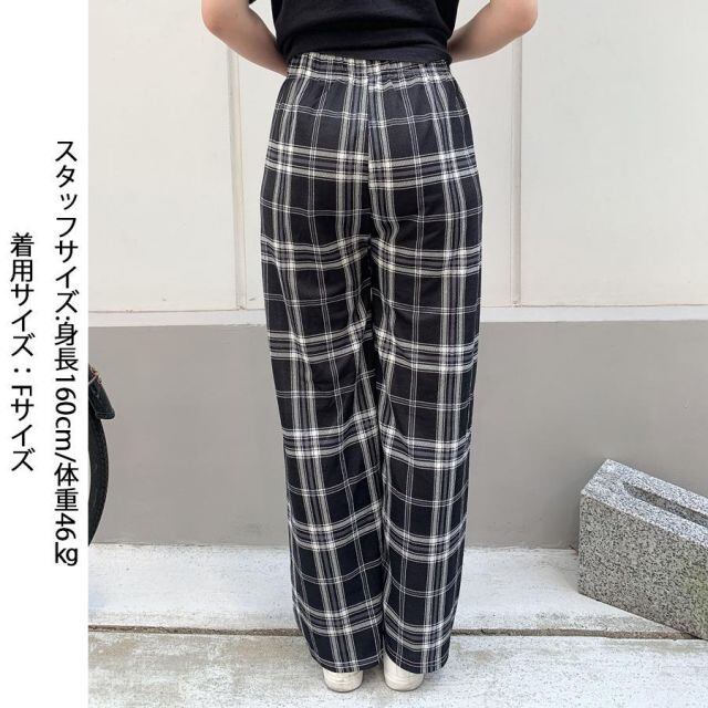 商品名:チェック柄パンツ ワイドパンツ レディース ストレート ウエストゴム パンツ ズボン ゆったり リラックスパンツ(メール便送料無料)