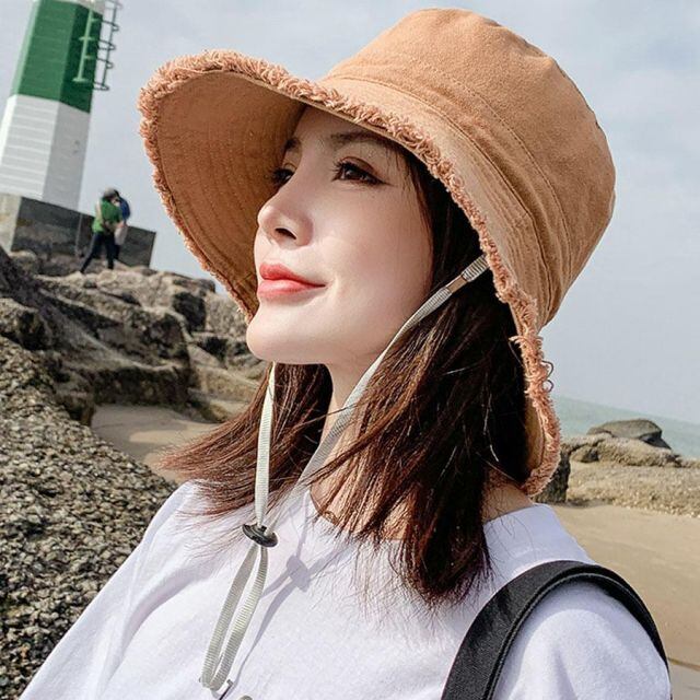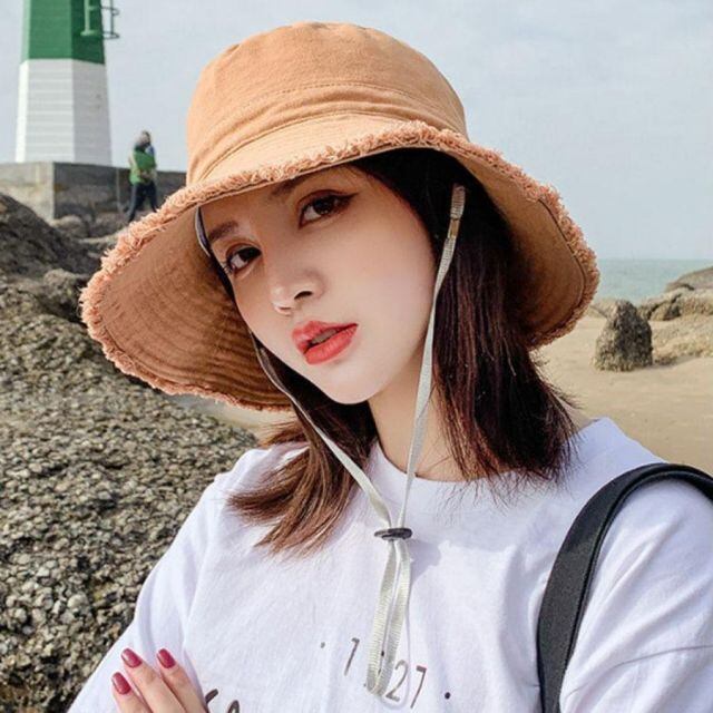 商品名:バケットハット 帽子 UVカット 折りたためる あご紐付き 飛ばない つば広 日よけ 無地 コットン レディース 帽子(メール便送料無料)