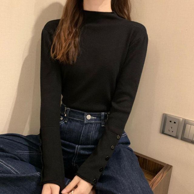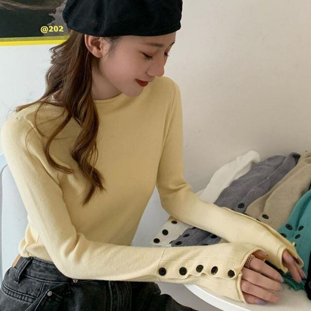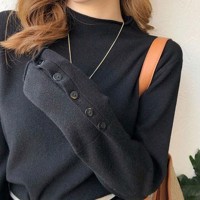 商品名:ニットトップス レディース 長袖 ボダン セーター オフィス OL 通勤通学 きれいめ フェミニン 上品 清楚 韓国ファッション(メール便送料無料)