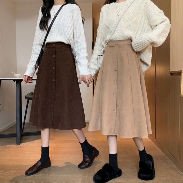 商品名:フレアスカート スカート ロング 秋冬 コーデュロイ風 プリーツスカート 黒 無地スカート ひざ下 ハイウェスト(宅急便のみ対応)