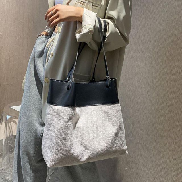 商品名:トートバッグ レディース キャンバス バッグ キャンバストート バイカラー 大容量 肩掛けファスナートートバッグ(宅急便のみ対応)