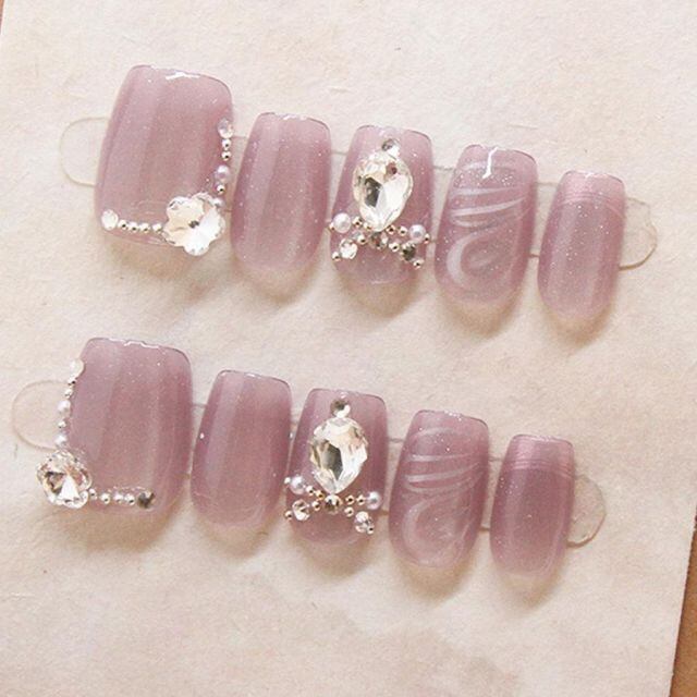 商品名:ネイルチップ ショート シンプル はな きらきら つけ爪 ネイルアート アートチップ デコチップ オーバル ウエディン(メール便送料無料)