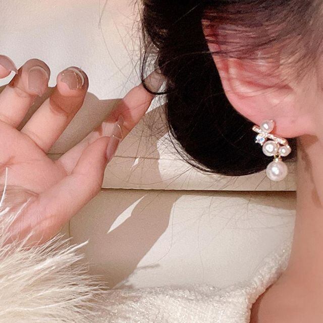 商品名:ピアス パール ロングピアス 揺れる アクセサリー 大ぶり 輝く プレゼント 女性 きらきら 大人 お洒落 ネークチェーン 小顔効果(メール便送料無料)