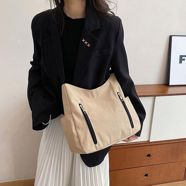 商品名:ショルダーバッグ キャンバスバッグ トートバッグ レディース キャンバストート 大容量 肩掛けファスナートートバッグ ショルダー 大容量(メール便送料無料)