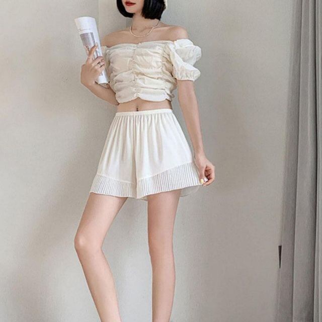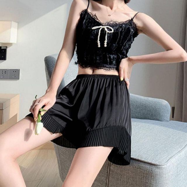 商品名:ペチパンツ シフォンレース切り替え透け防止 インナーパンツ タップパンツ 見せパンツ 部屋着 ショートパンツ フリーサイズ チラ見せ(メール便送料無料)