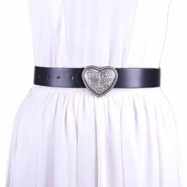 ベルト レディース ハートベルト 合皮 ウエストマーク シルバーデザインバックル オシャレ(宅急便のみ対応)