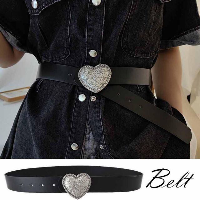 商品名:ベルト レディース ハートベルト 合皮 ウエストマーク シルバーデザインバックル オシャレ(宅急便のみ対応)