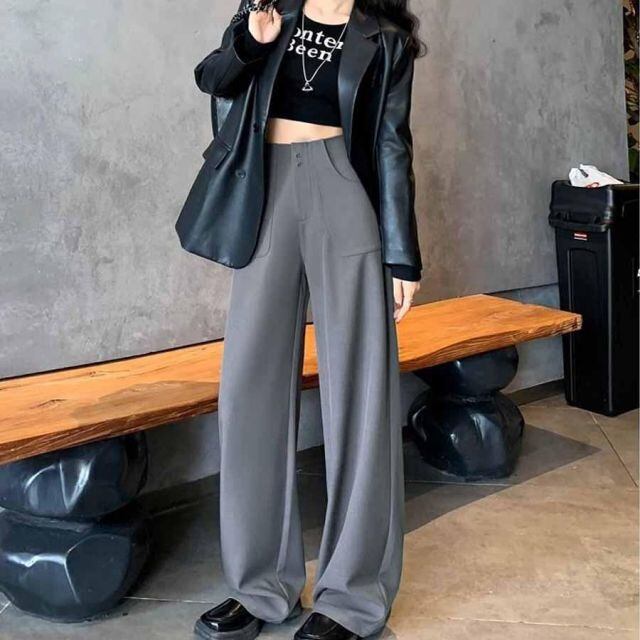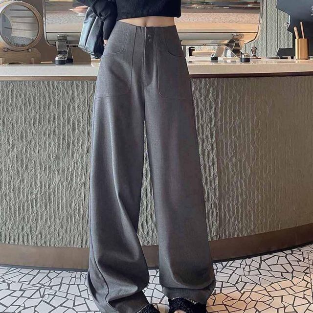 商品名:ワイドパンツ スラックス タックワイドパンツ リラックスパンツ カジュアルパンツ 無地 ゆるい 体型カバー ボトムス マキシ丈(メール便送料無料)