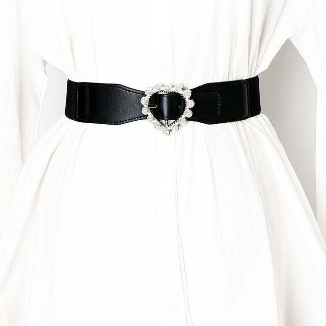 商品名:ゴムベルト ハートモチーフ バックル付レディース 幅広 太ベルトバックル付 細見え ラクチン サッシュベルト 韓国風 可愛いエストマーク(メール便送料無料)