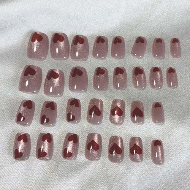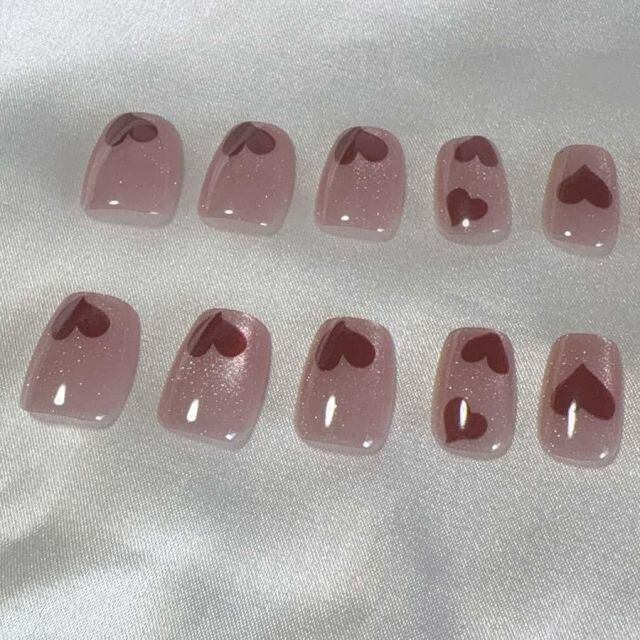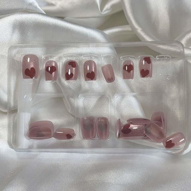 商品名:ネイルチップ ハート ショート シンプル ピンク つけ爪 ネイルアート アートチップ デコチップ オーバル ウエディン(メール便送料無料)
