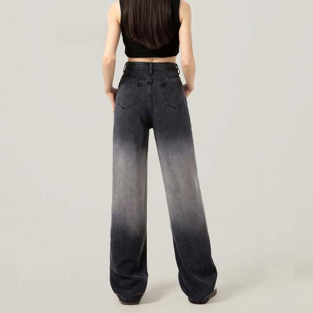 商品名:デニムパンツ グラデーション チャコールグレー 美脚パンツ レディース デニム ジーンズ ハイウエスト ダンスパンツ 長ズボン 美脚効果(メール便送料無料)