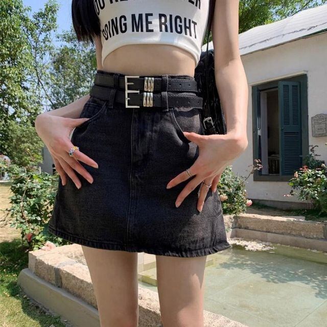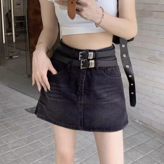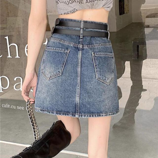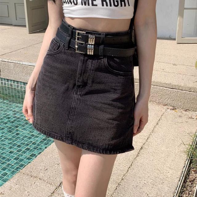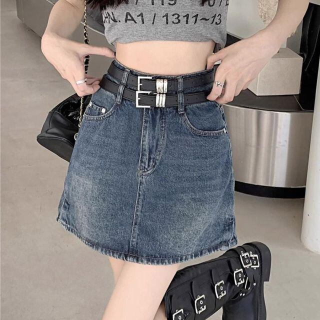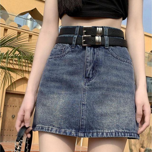 デニムミニスカート ダブルベルト レディースデニムスカート ショートスカート タイトスカート Aライン 台形スカート(メール便送料無料)