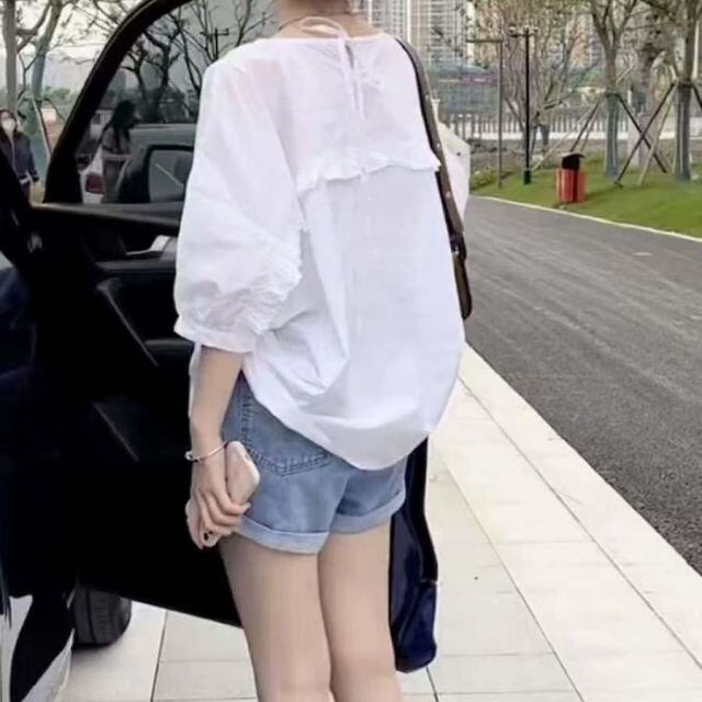 ブラウス バックリボン シャツトップス半袖 フリル袖 スキッパーブラウス オフィスカジュアル 韓国風 フォーマル 通勤OL 半袖ブラウス(宅急便のみ対応)