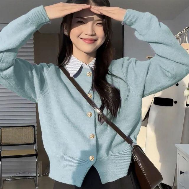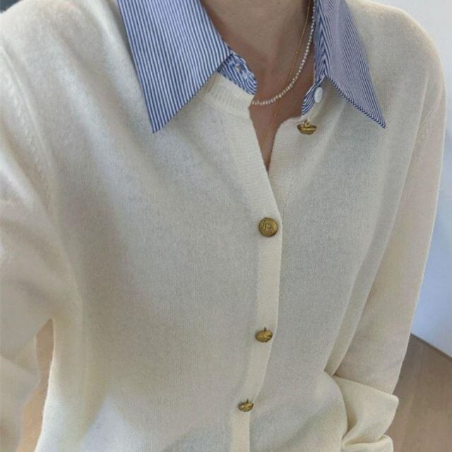 使い勝手の良いシンプルな襟付きカーディガン 。