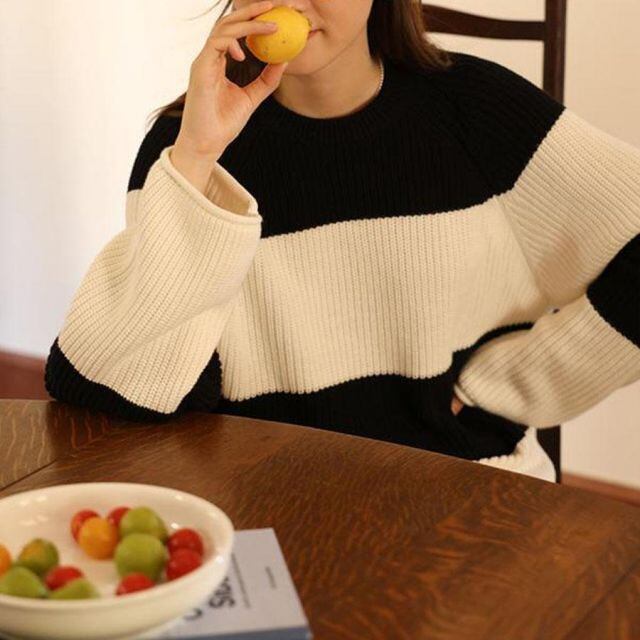 商品名:ニットセーター ボーダー柄 シンプル レディース ニット ゆったり ニットソー 着痩せ ボーダー柄 ファッション(メール便送料無料)
