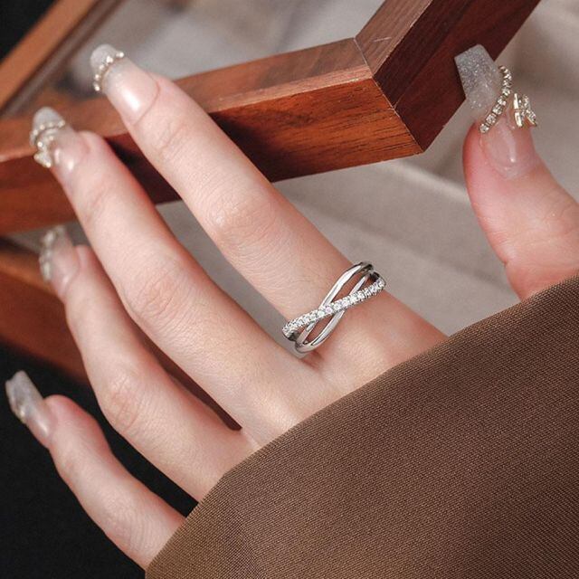 3本のメタルラインをクロスさせた多重ラインがつくり出す輝くリング。