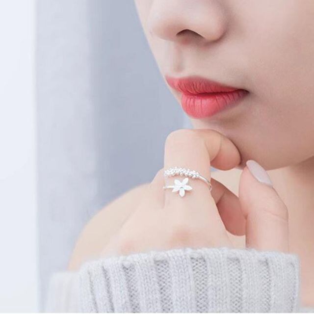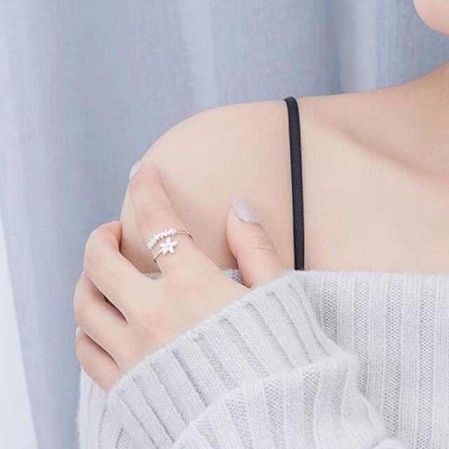 指輪 花デザイン オープンリング ゴールドラインストーンリング キラキラ フリーサイズ華奢 記念日 母の日 パーティ入学式 卒業式(メール便送料無料)