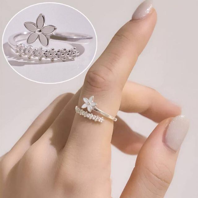 花とラインストーンが上品に輝くリング。