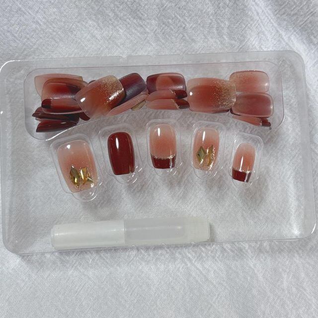 その際、ネイルチップの上から圧をかけて下さい。接着剤が完全に乾きましたら完成です。