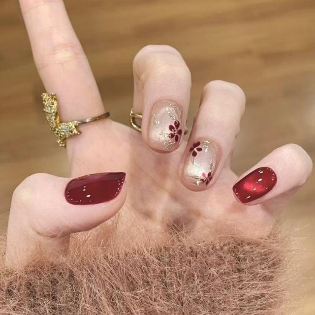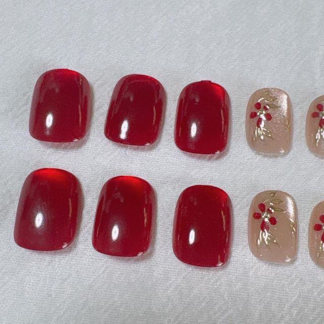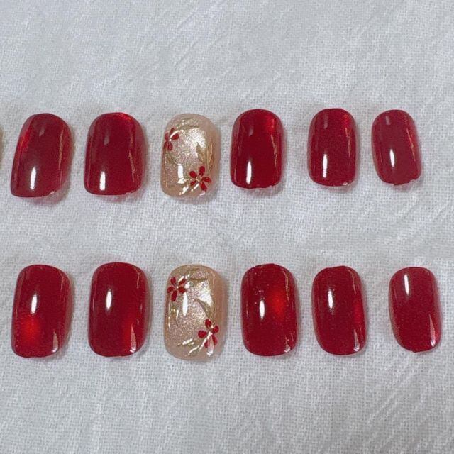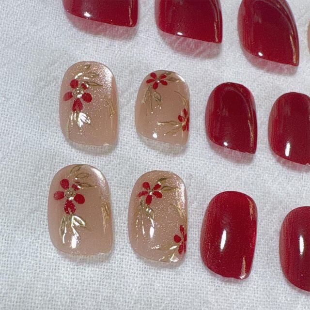 商品名:ネイルチップ はな ショート きらきら ワインレッド ゴールドつけ爪 ネイルアート アートチップ デコチップ オーバル ウエディン(宅急便のみ対応)