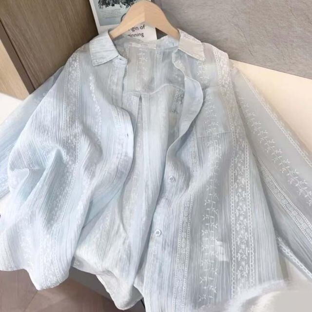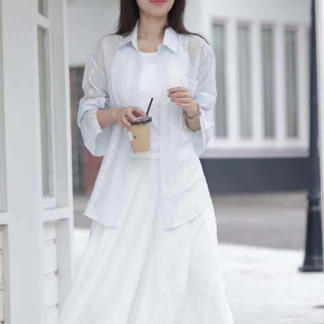 夏の季節にピッタリな透け感のあるシャツカーディガン。