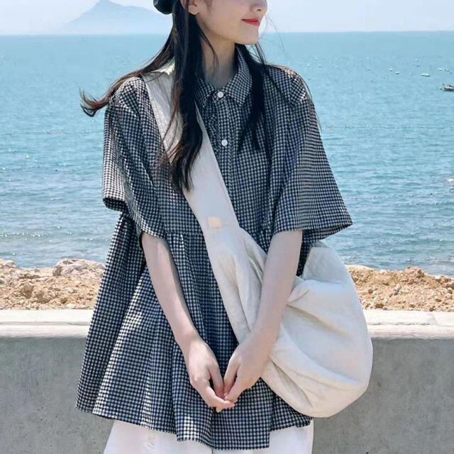 夏の季節にピッタリなチェッ柄シャツブラウス。