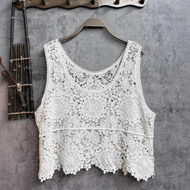 夏らしいシースルーデザインノースリーブトップス。