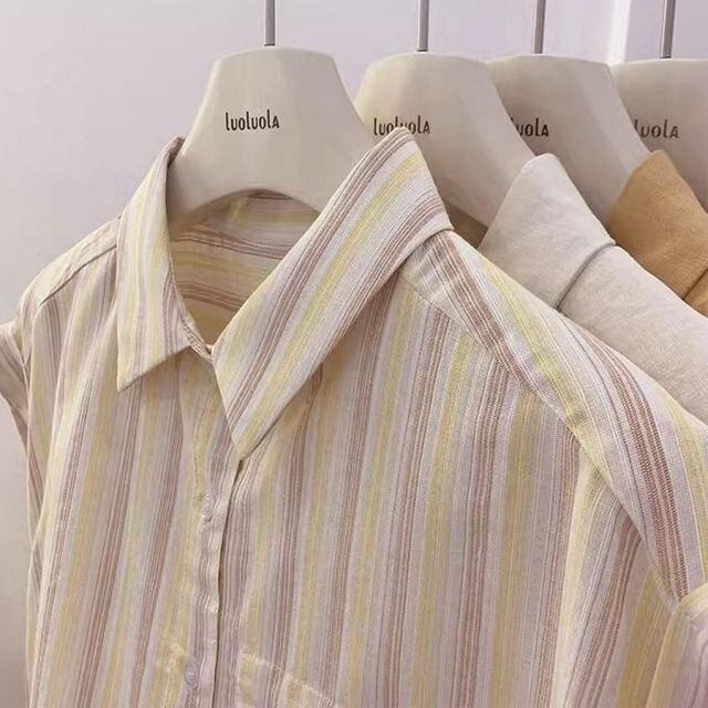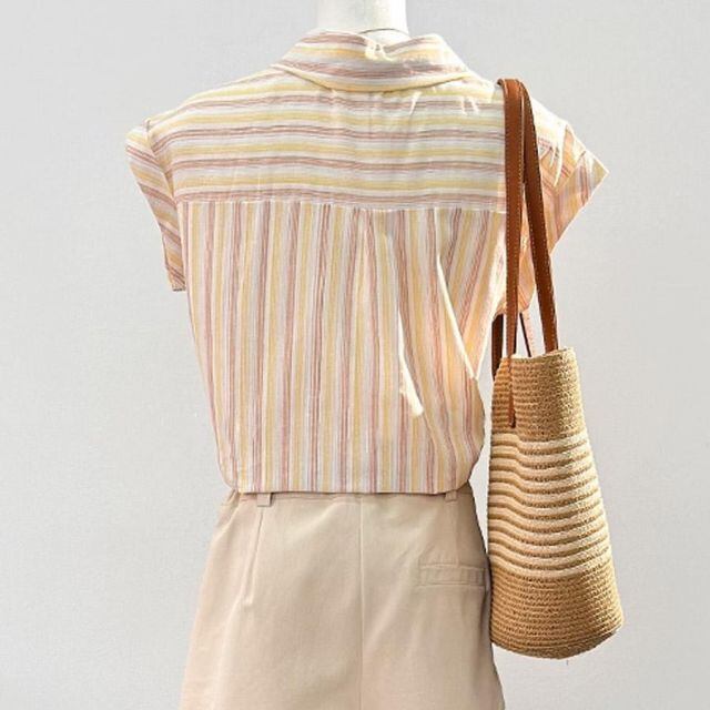 商品名:ブラウスシャツ レディース 半袖 襟付き シャツ フレンチスリーブ ロールアップ 夏 半袖シャツ 開襟シャツ ゆったり シンプル(メール便送料無料)