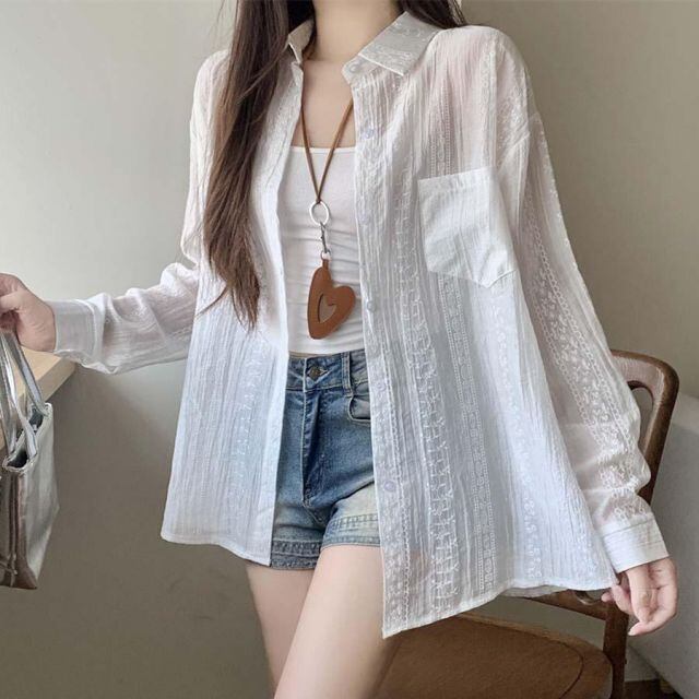 夏の季節にピッタリな透け感のあるシャツカーディガン。