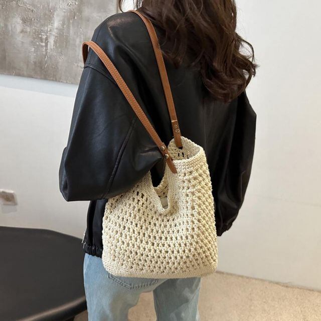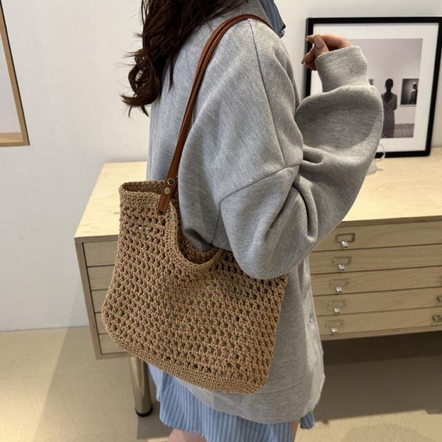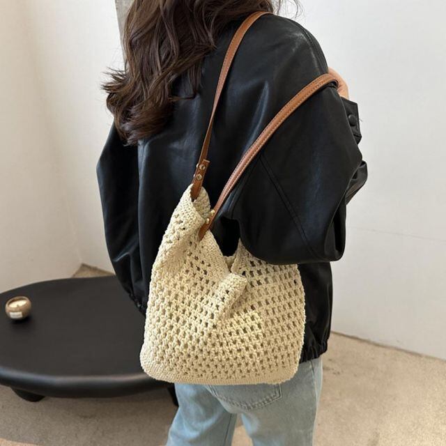 商品名:編みバッグ レディース バッグ トートバッグ エコバッグ メッシュ かごバッグ 大容量 夏バッグ ネットバッグ 手提げ 肩掛け デート(メール便送料無料)