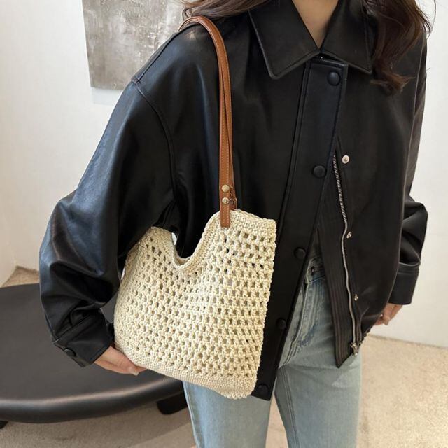 編みバッグ レディース バッグ トートバッグ エコバッグ メッシュ かごバッグ 大容量 夏バッグ ネットバッグ 手提げ 肩掛け デート(メール便送料無料)