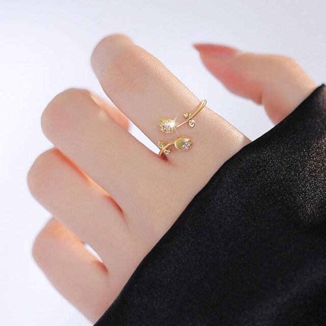 指輪 花デザイン オープンリング フリーサイズ ゴールド 入学式 卒業式 ラインストーン リング キラキラ シンプル カジュアル(メール便送料無料)