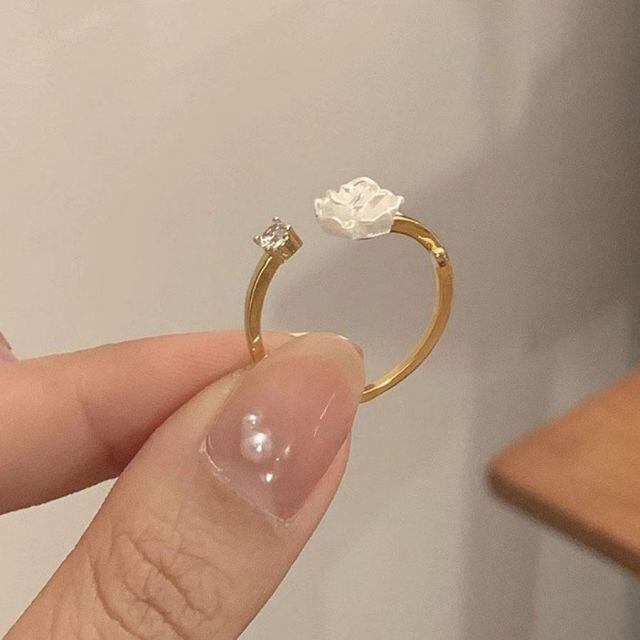 商品名:指輪 花デザイン オープンリング ゴールドラインストーンリング キラキラ フリーサイズ 華奢 記念日 母の日 パーティ入学式 卒業式(メール便送料無料)