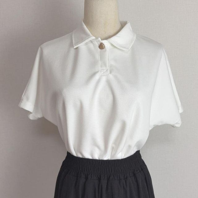 商品名:ハートボタン ポロシャツ 襟付き 半袖 Tシャツ クロップド丈 レディース 半袖 トップス 春夏 トップス カットソー 襟付き (メール便送料無料)