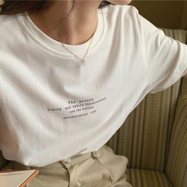 商品名:ロゴTシャツ レディース 夏服 tシャツ 英字ロゴ ゆるT 半袖 柄プリントTシャツ ゆるシルエット 半袖Tシャツトップス(メール便送料無料)